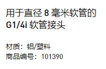 perma 用于直径 8 毫米软管的G1/4i软管接头系列